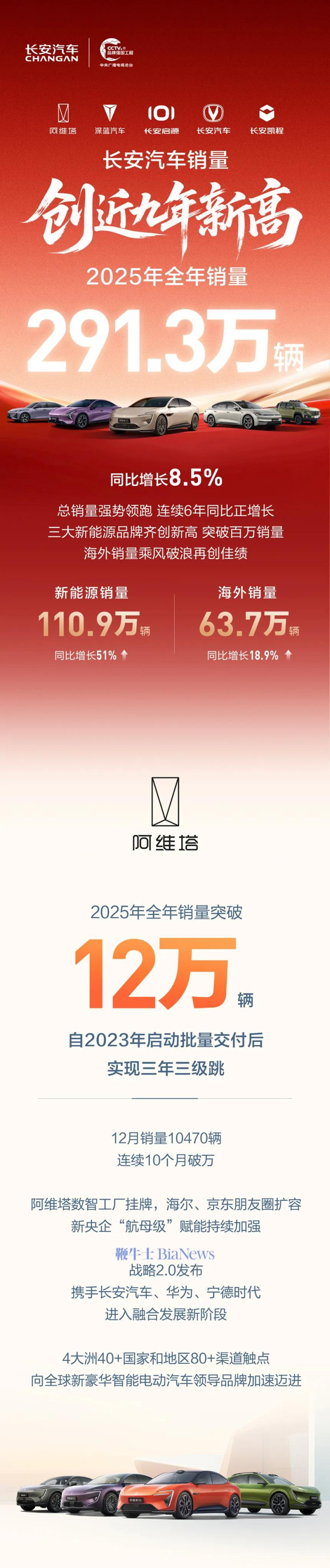 今日云策 长安汽车: 2025年新能源销量110.9万辆, 同比增长51%