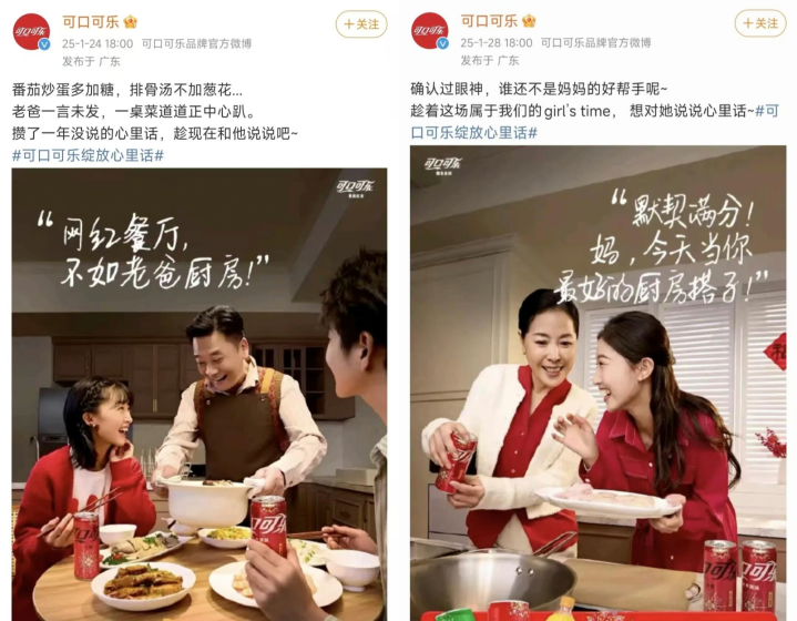 去年1月24日,可口可乐发布了一条“爸爸下厨房”的海报广告,爸爸给年轻的孩子烧了一桌菜,“网红厨房,不如老爸厨房”。结果很多人批评说:“现实中明明都是妈妈下厨房,为什么海报里没有女性?可口可乐太虚伪。”过了几天,可口可乐又发布了一则“妈妈下厨房”的广告,底下还是批评声一片:“难道广告是在默认必须女性做饭!”